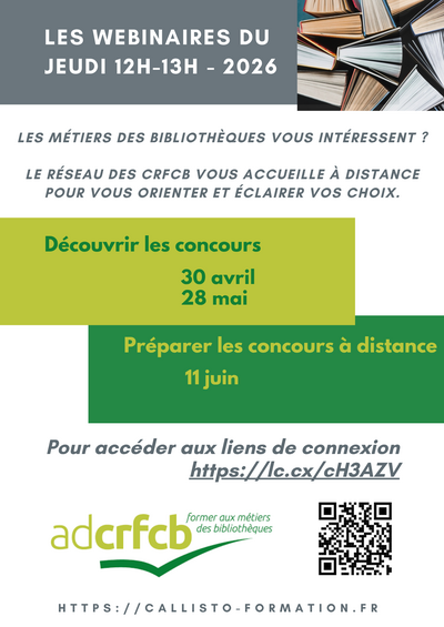 - présentation des concours et métiers des bibliothèque : 30 avril ou 28 mai au choix